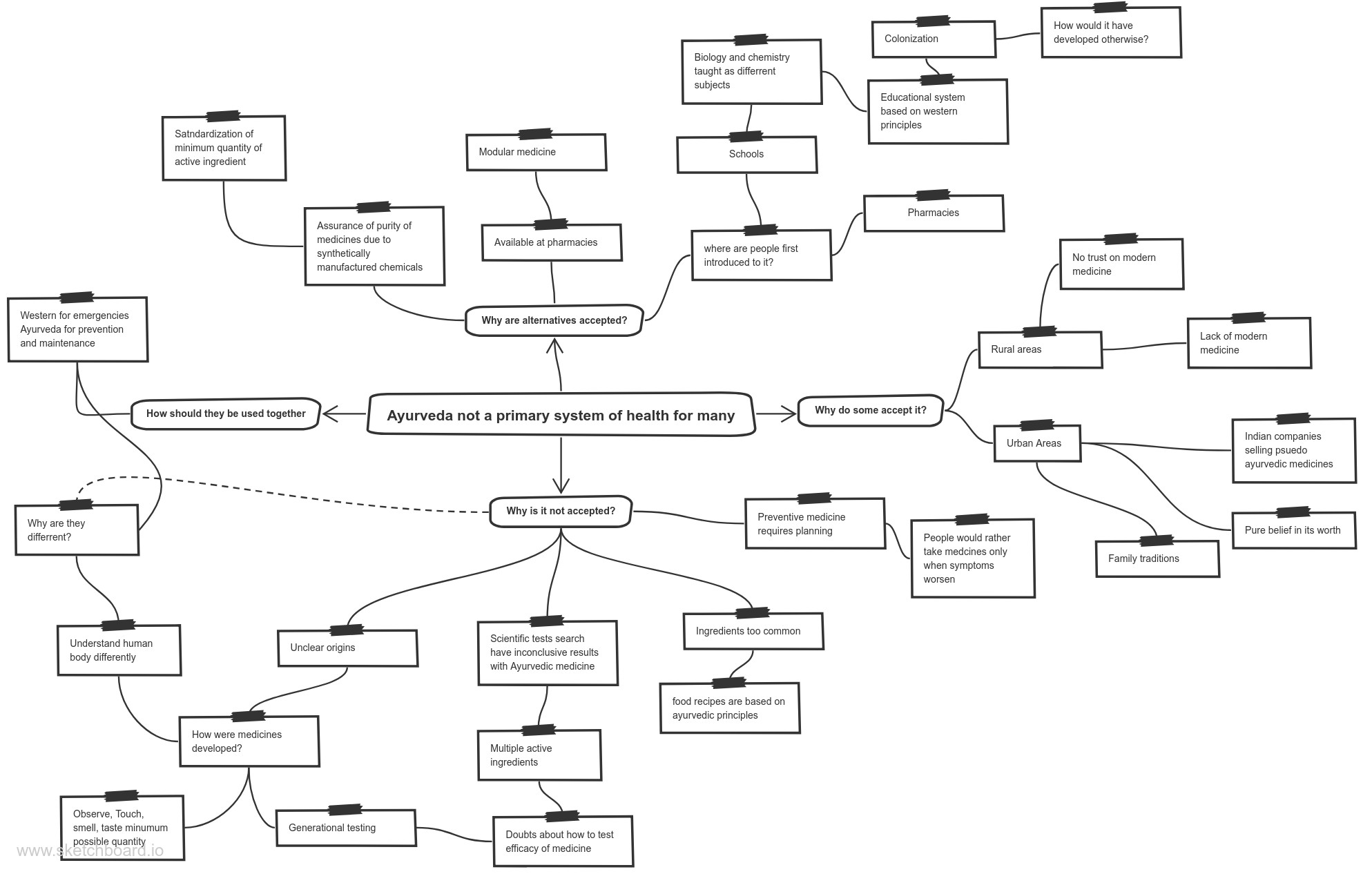 Our approach was a 2 month deep dive into Ayurveda to understand the basics of the science. This involved studying the philosophies of Ayurveda, its history, current research methods, and understanding what doctors, patients, students and other stakeholders thought about it. This deep dive helped me understand basic diagnostic and treatment practices which my collaborator was already well versed with.